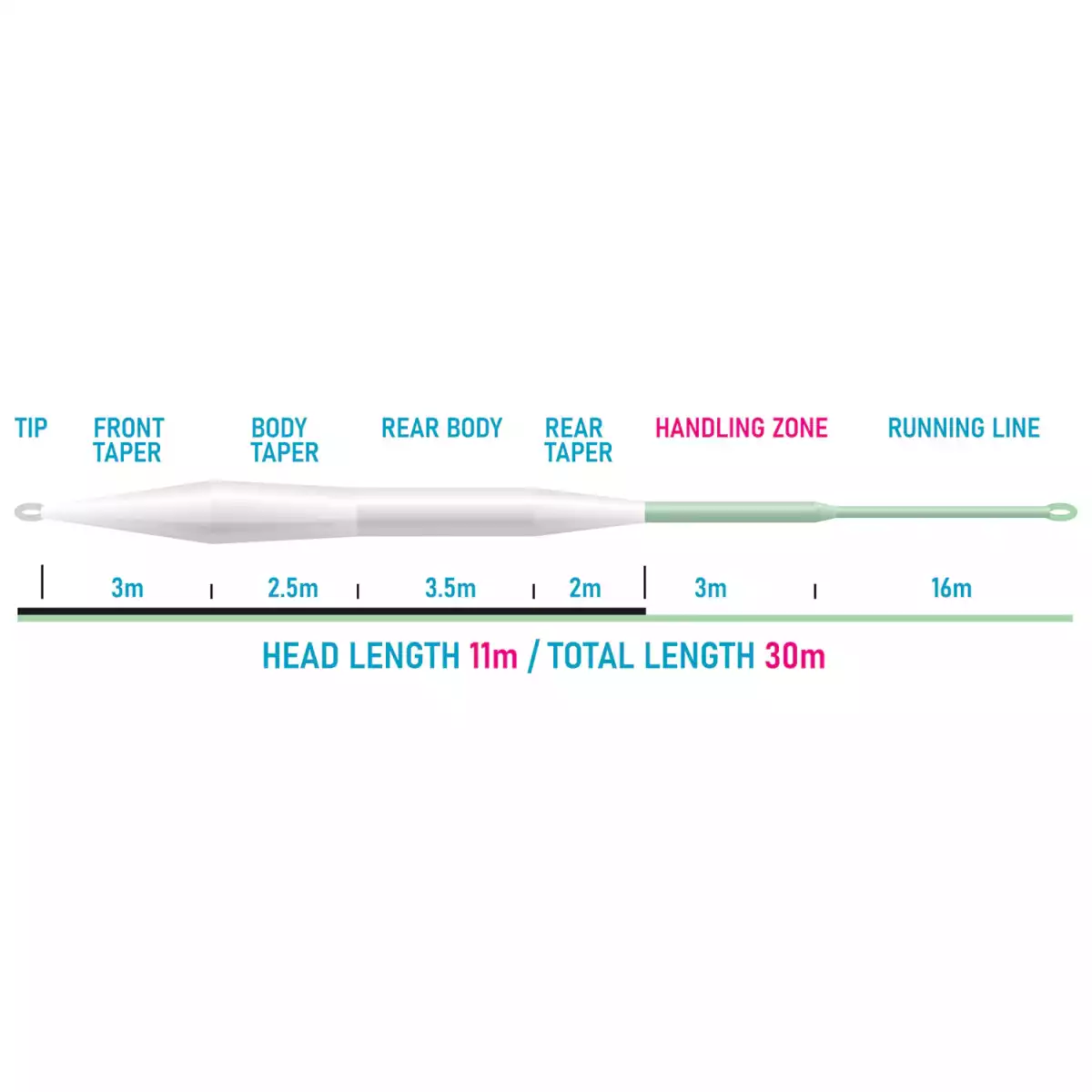 – Marquages clairs du poids de la soie sur la boucle de la pointe